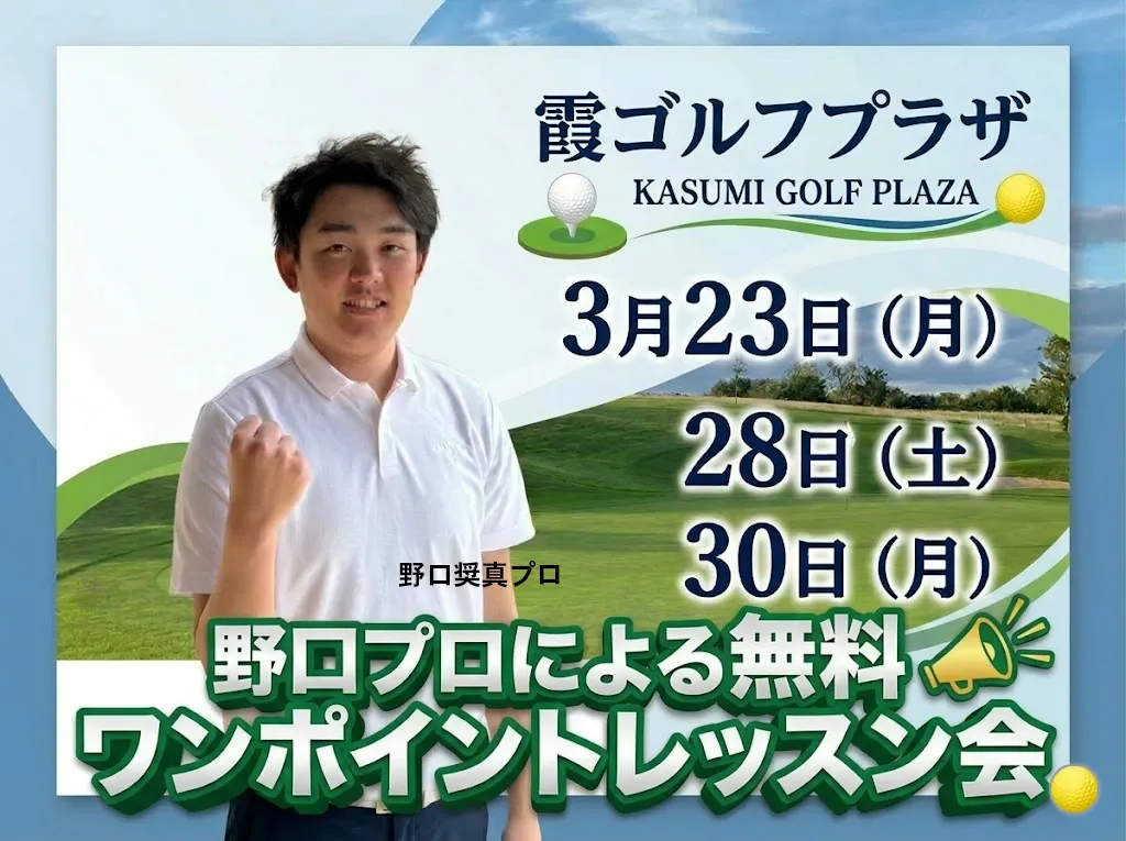 野口奨真プロによる無料ワンポイントレッスン会を開催します